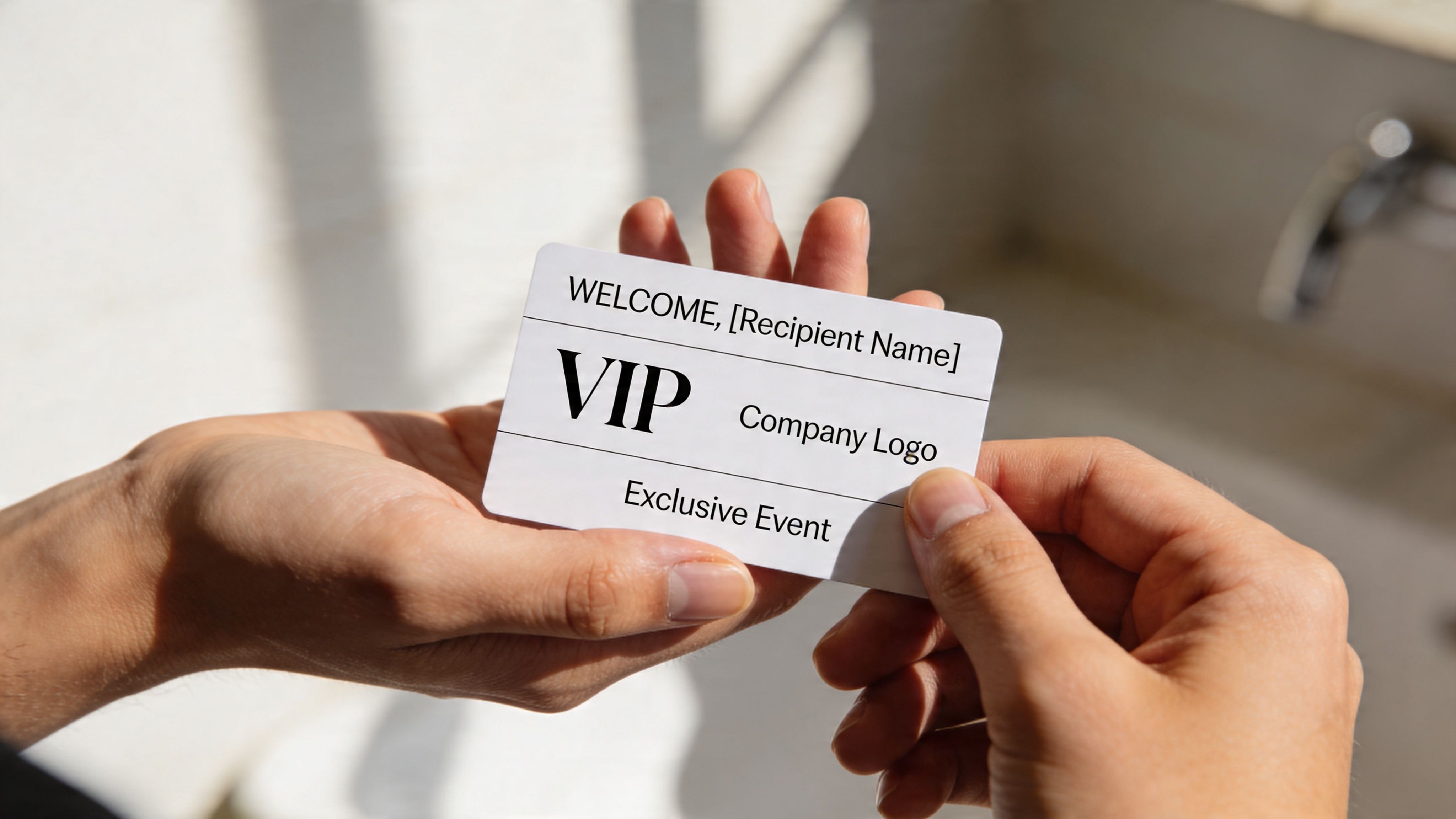 Now take the same campaign and change the image. Sarah sees a VIP pass with her name, the event title, and the correct date already placed on the design. The message no longer feels like a standard template with a name inserted. It feels prepared for her.