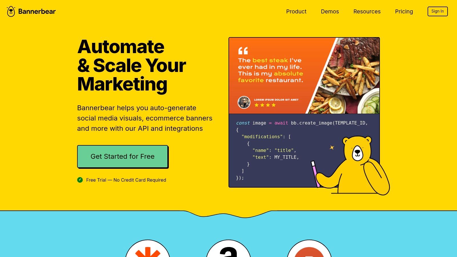 Bannerbear is a mature and reliable platform for template-based media generation, making it a top contender for marketers seeking consistent, high-volume automated graphics. It excels at creating social media posts, email banners, and Open Graph images directly from data in tools like Airtable, Google Sheets, or your CRM. The platform's strength lies in its polished template editor and a robust, well-documented Zapier integration.