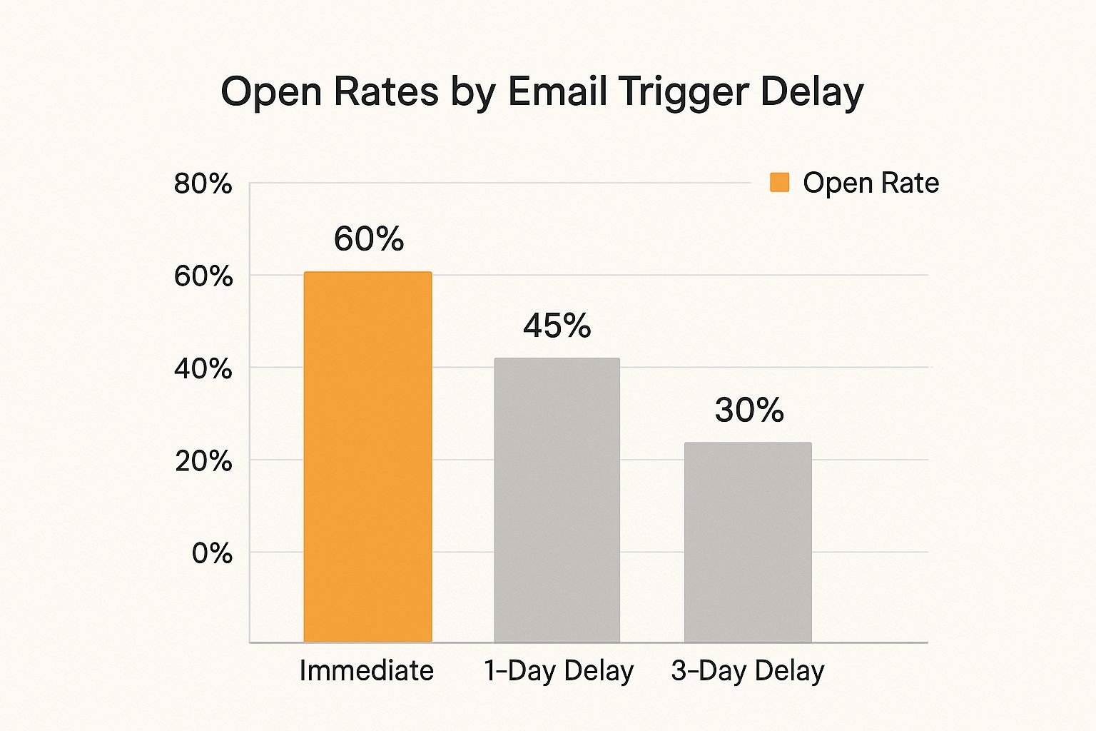 This infographic shows how timing impacts email open rates. See how immediate emails perform best? They clock in at a 60% open rate, compared to a 45% open rate for a 1-day delay and a measly 30% for a 3-day delay. This just goes to show how important timely delivery is when you're automating your emails. And, while we're talking about best practices, don't forget to set up your sender information correctly in OKZest. A clear and recognizable "From" name and address will do wonders for your deliverability. You want your emails to land in inboxes, not spam folders!
