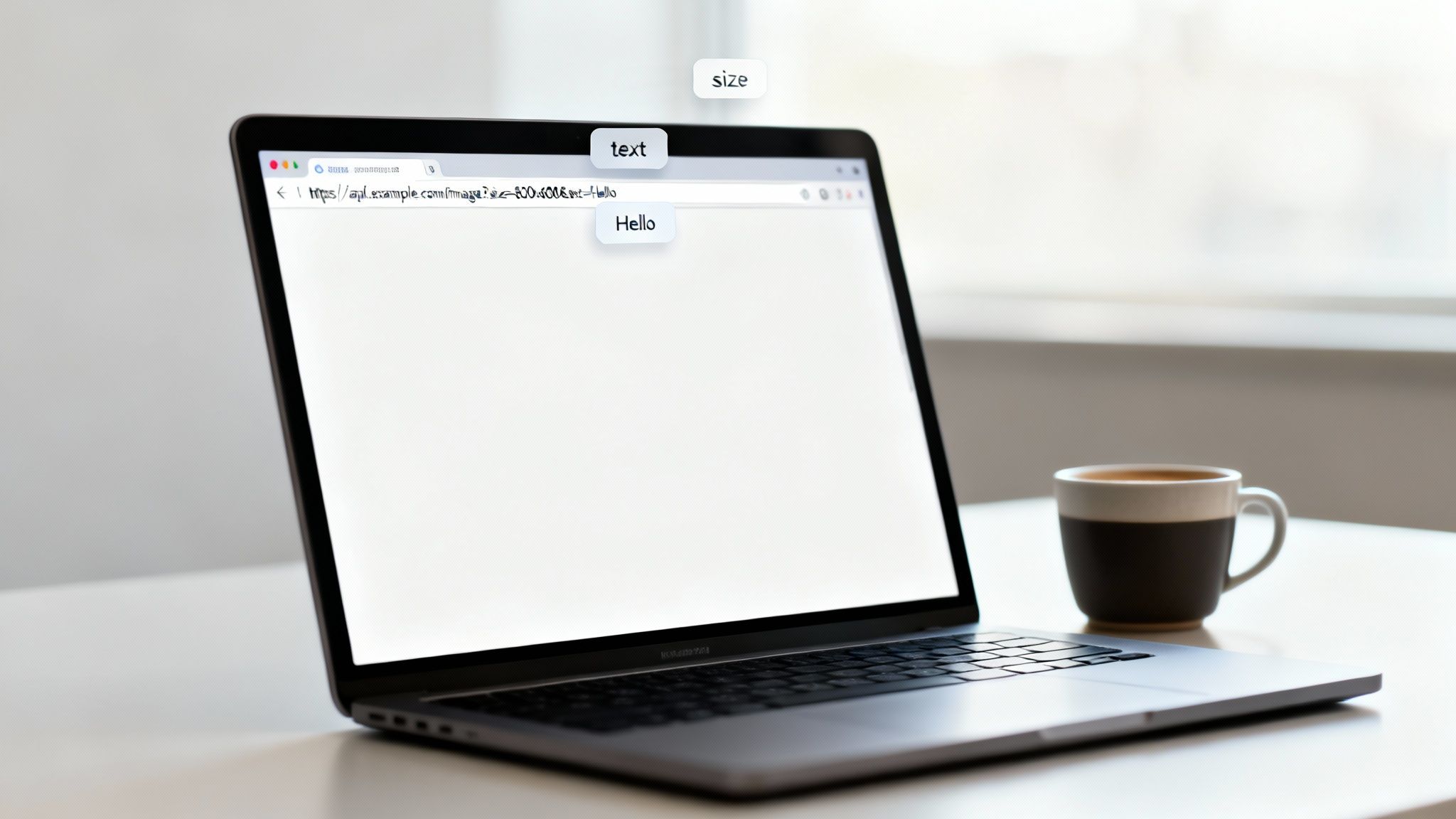 Think of a standard image link you'd find anywhere online—it points to a static file, like a JPEG or PNG, that never changes. An image API URL is built differently. It’s a programmable link that talks to a server, telling it to generate a visual based on the parameters you include right in the URL string.
