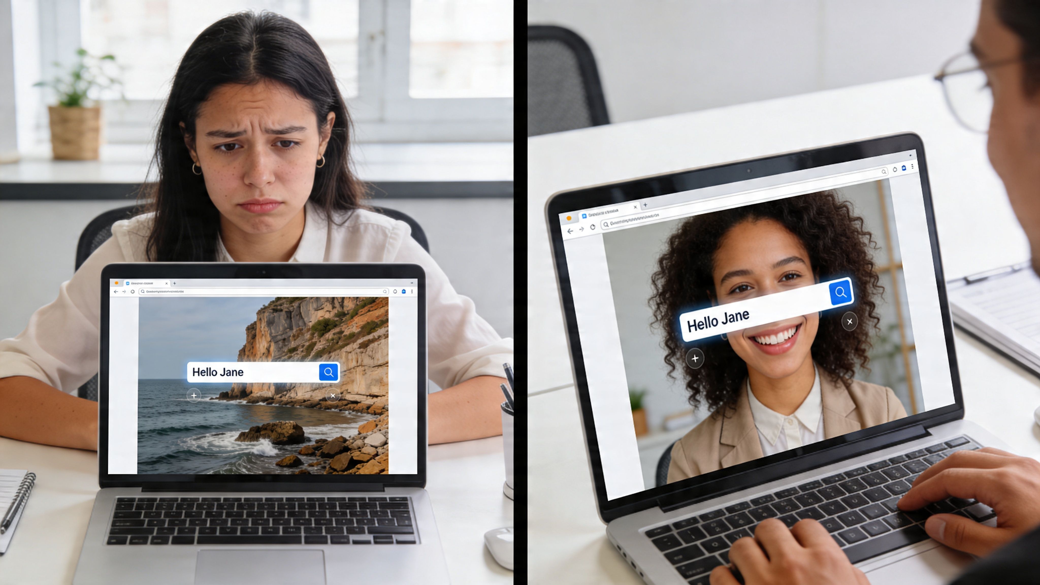 A personalized image does. A conference invite can show the recipient’s name on a badge. A webinar reminder can display their company on a branded seat reservation card. A sales email can include a mockup of their homepage inside a frame with a custom note from the rep. Those assets feel specific because they are specific.
