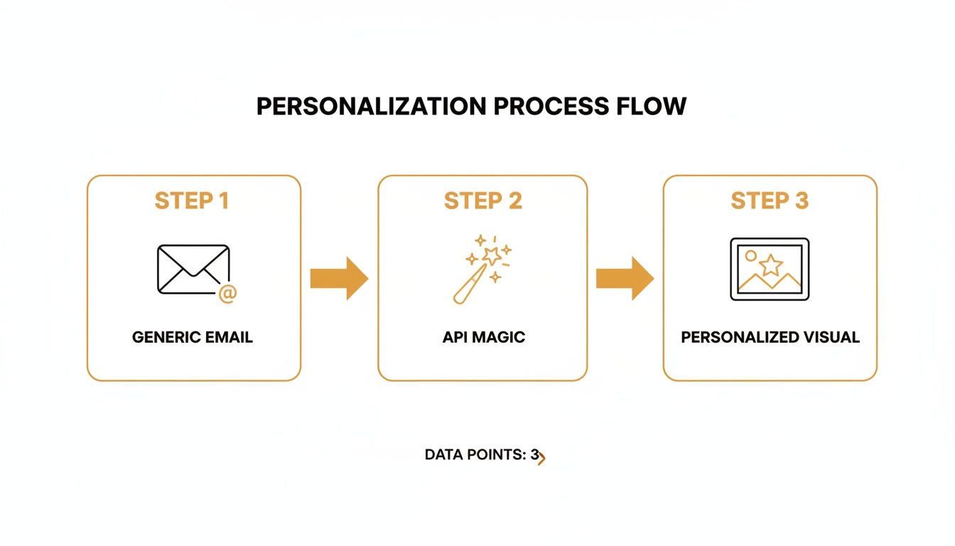 This diagram shows just how a generic email is transformed by an API call into a completely personal visual experience.