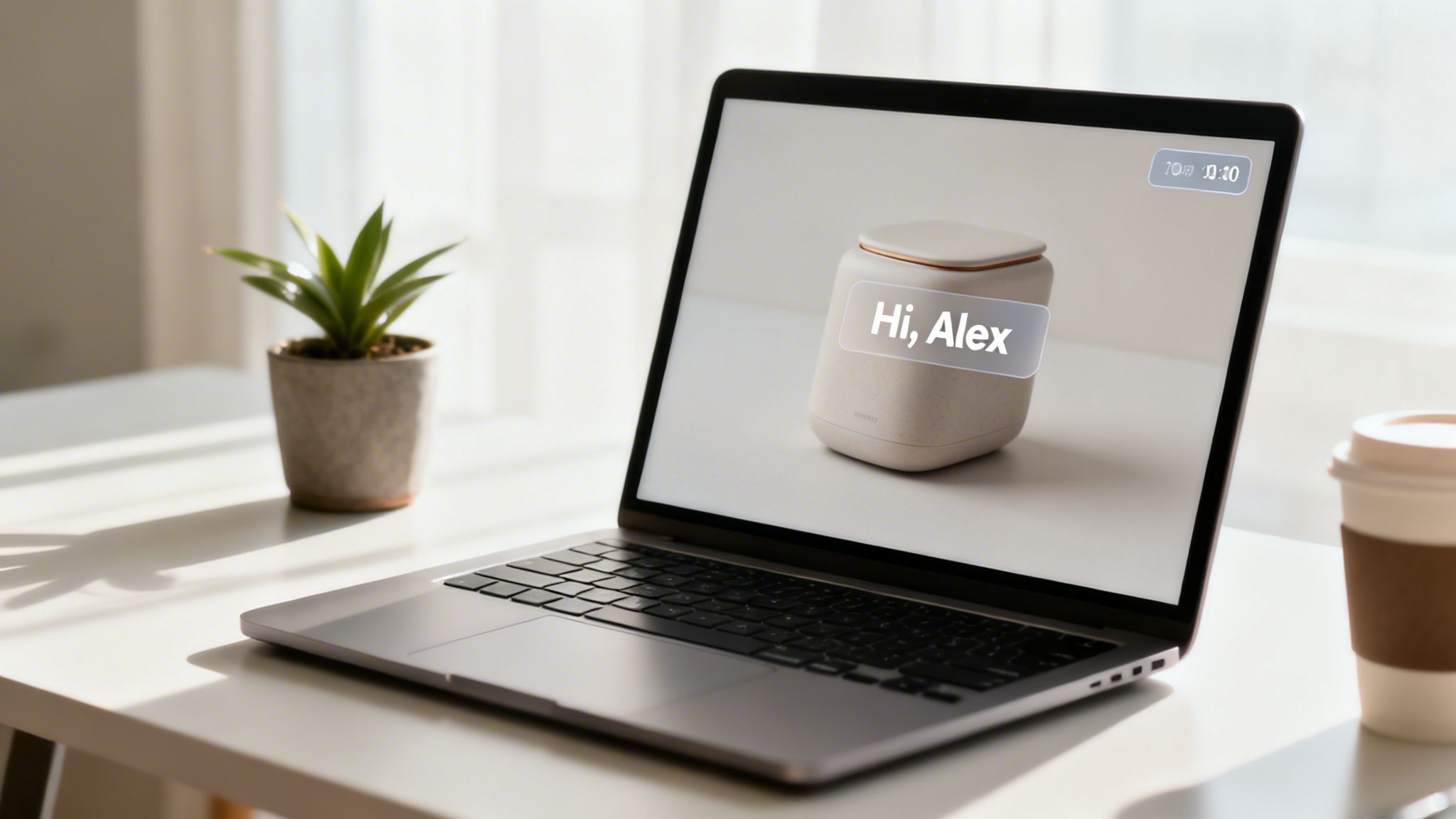 <img src="https://okzest.blob.core.windows.net/blog/a-laptop-on-a-desk-showing-a-smart-device-with-hi-alex-next-to-a-plant-and-coffee-cup.jpg" alt="A laptop on a desk showing a smart device with "Hi, Alex", next to a plant and coffee cup." width="800">